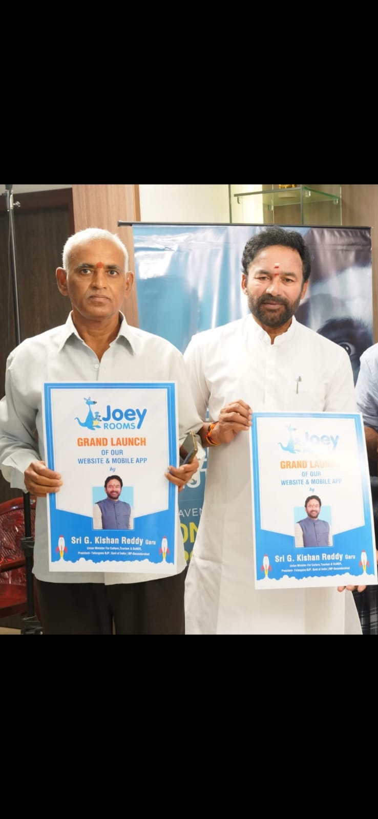 Amidst an ambiance brimming with entrepreneurial fervor, Central Tourism Minister G. Kishan Reddy unveiled the much-awaited website and mobile application of the promising startup, Joeyrooms. Highlighting the government’s steadfast support for young entrepreneurs, Minister Kishan Reddy underscored their pivotal role in propelling economic growth and fostering employment opportunities also he mentioned lack of online booking platforms in Tier-II and Piligrim places are challenge for Tourism and this initiative is one of the milestone towards Tourism development.