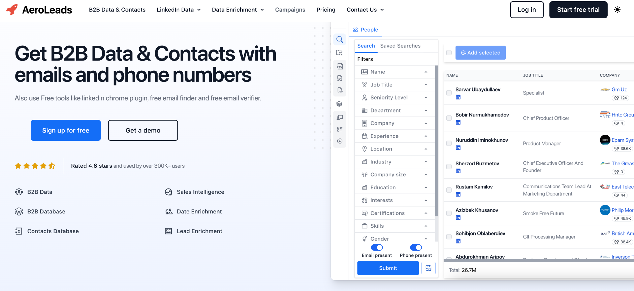 - Access to a global B2B contact database, including LinkedIn data