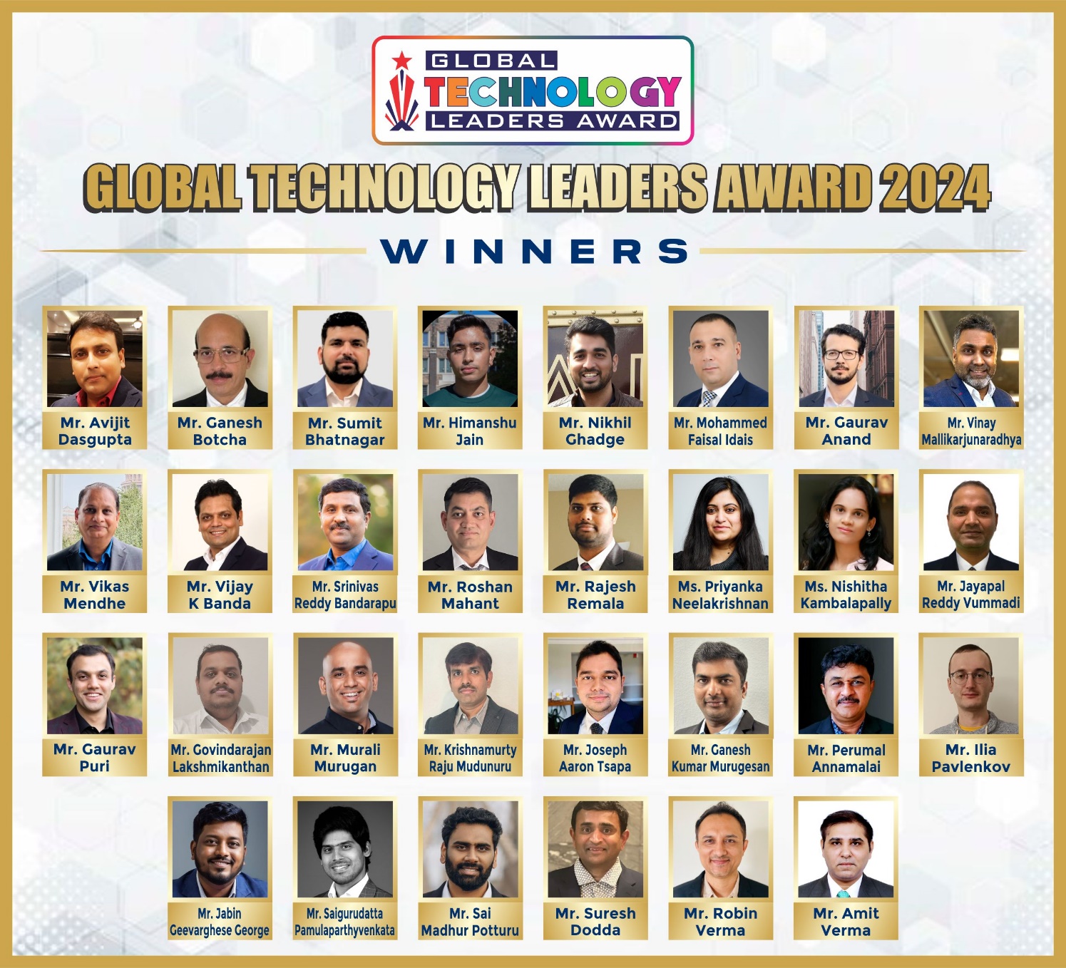 The Global Technology Leaders Award 2024 a prestigious Award that truly values the contributions of individuals in the field of Technology from USA, UK, India, UAE, Armenia, Canada, Mexico, Australia & all over the world.We are delighted to announce that we have received over 2800+ nominations from the United States, the United Arab Emirates, and India. And we have few names to announce and congratulate the Awardees name who got the opportunities to be a part of Global Technology Leaders Award 2024, awarding those categories who are working with great perseverance, performance & dedication with a focus on Innovation, Creativity, and Excellence.