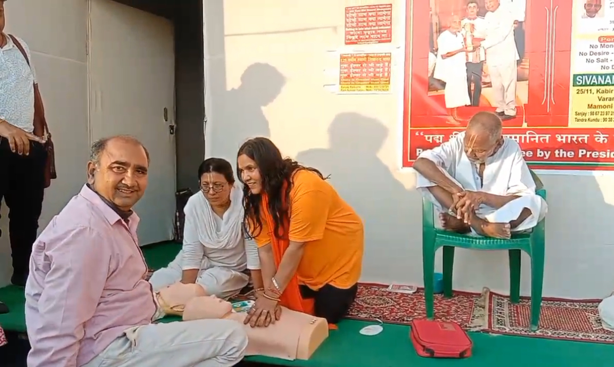 In a remarkable moment, Padma Shri awardee Shri Swami Sivanand Baba, one of India’s oldest living personalities at 129 years, endorsed and deeply appreciated the importance of CPR training. He observed live demonstrations of life-saving techniques, reinforcing that CPR knowledge is essential across all ages and backgrounds.