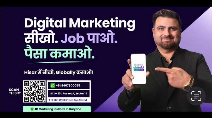 Digital Chaabi Academy in Hisar has launched a 100-day digital marketing course designed especially for students, freshers, and working professionals who want to start or switch to a career in digital marketing.