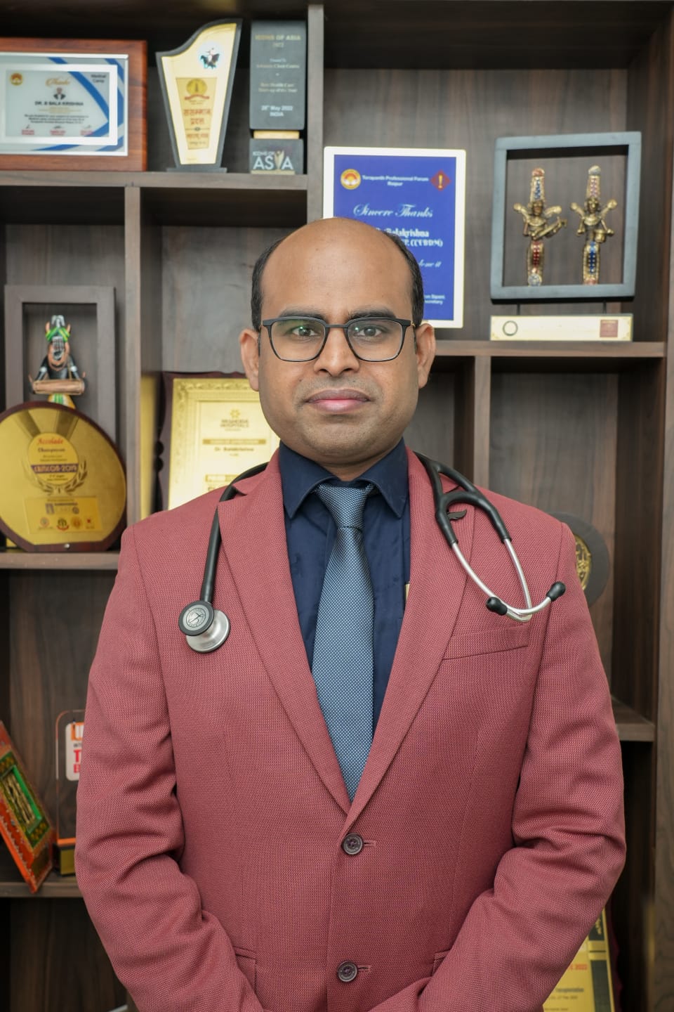 Born on January 19, 1985, in Bhilai, Dr. Bala Krishna has always been driven by a passion for medicine and patient care. After completing his MBBS from the Chhattisgarh Institute of Medical Sciences,he pursued a post-graduate degree in Pulmonary Medicine, further specializing in Sleep and Critical Care Medicine. His dedication and expertise have earned him a Fellowship of the American College of Chest Physicians (FCCP), a recognition that marks him as a leader in his field.
