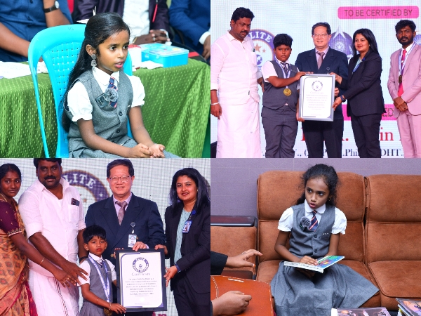 Emi Falon E, a Grade II student, achieved a pioneering world record by recalling the most digital images by their spellings using the Eidetic Memory Technique in just 10 minutes, tallying an impressive 219 correct spellings out of 223 attempted . This record-breaking attempt marks a historic first globally. Emi employed the Jolly Phonics Method to blend words and recall their spellings with remarkable proficiency. Her precision in spelling bees was admired and applauded, highlighting the importance of phonics-based learning techniques in enhancing language acquisition and memory retention in young learners.