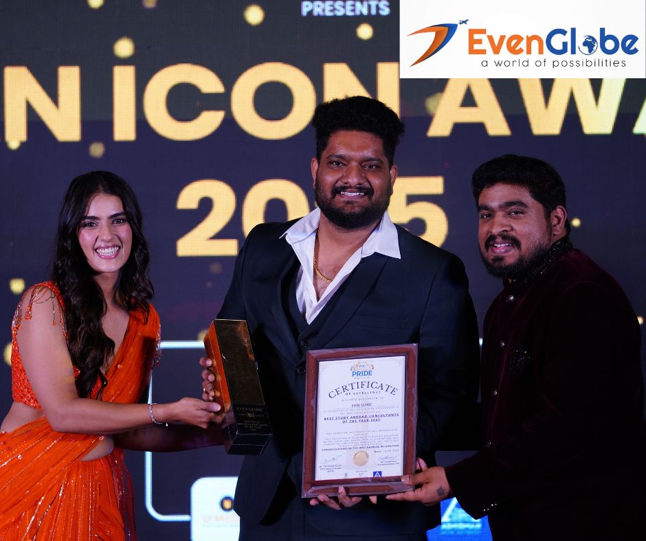 Hyderabad, July 2025 – In a proud moment for India’s education consulting industry, EVENGLOBE, an overseas education consultancy founded by Mr. Yaswanth Chikkala, has been honored with the prestigious title of “Best Study Abroad Consultants of the Year 2025” at the Indian Icon Awards. Recognized for its ethical counseling, global partnerships, and end-to-end student support services, EVENGLOBE has emerged as a trusted beacon for aspirants seeking quality international education guidance.