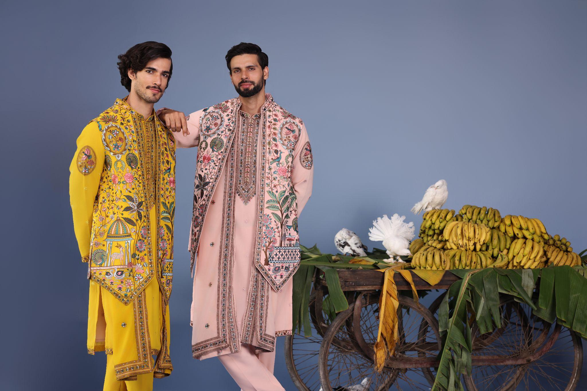 In India, men’s ethnic wear has traditionally been confined to weddings or religious ceremonies. Kalpraag’s bold patterns, dramatic embroidery, and artistic themes are pushing the boundaries of where, when, and how Indian men can wear ethnic outfits.