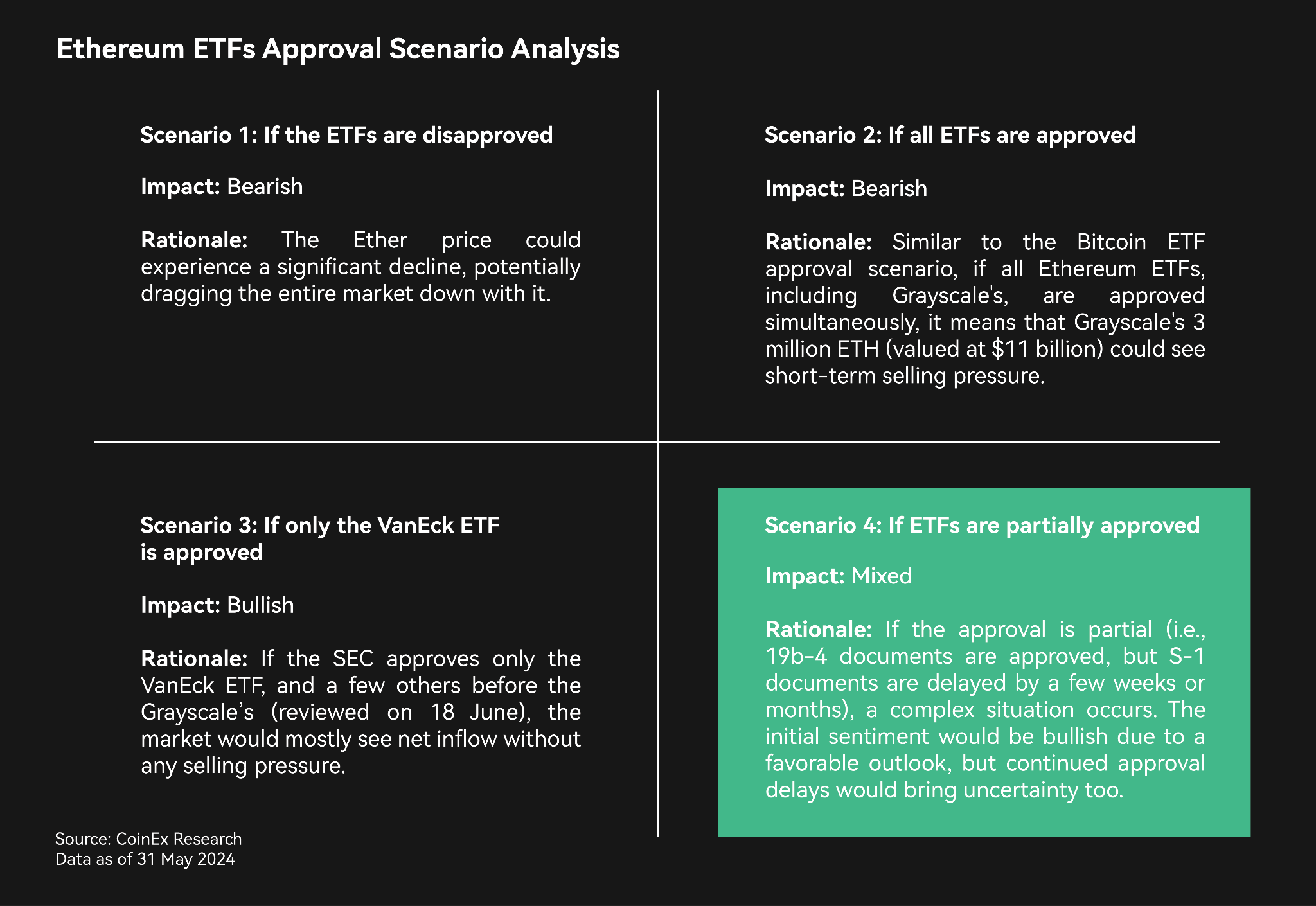 On May 23, the SEC approved the 19b-4 rule change, a crucial step toward the introduction of Ethereum ETFs. This decision was unexpected, as market sentiment prior to this leaned heavily towards a disapproval. Analysts speculate that political motivations may have played a role, with the Biden administration seeking to bolster support against cryptocurrency advocate Donald Trump. The final green light for trading, anticipated by late June or early July, is expected to follow soon.