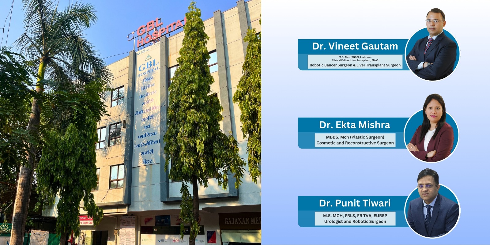 Founded by esteemed surgeons Dr. Vineet Gautam and Dr. Ekta Mishra, GBL Hospital has established itself as a pioneer in the field of Robotic surgeries, Liver Treatments and various Cosmetic Procedures promising quality, affordable, and hassle-free care to its patients.