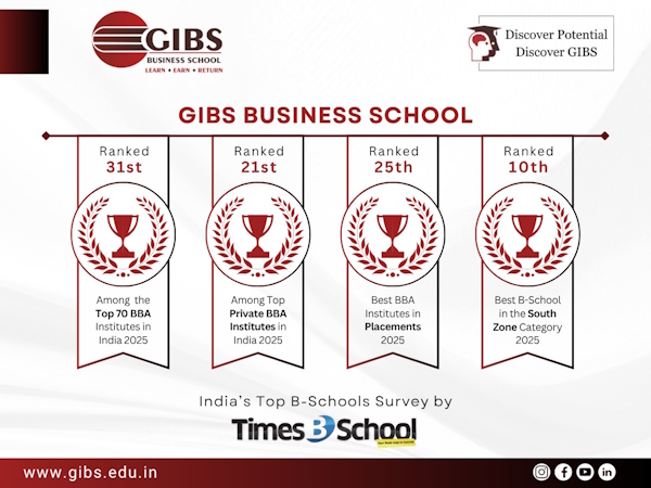 GIBS Business School in Bangalore has scored big once again in the Times BBA Education Ranking Survey 2025, proving it’s still at the top of its game in teaching business. Pushing the limits of what an undergraduate business program can be, GIBS has landed impressive trophies in several key categories, earning its spot among the best business schools in the country.