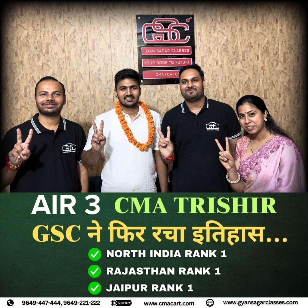 With this latest set of results, Gyan Sagar Classes has not only brought laurels to Jaipur but has also set a benchmark for CMA coaching in the entire North Indian region. GSC’s journey is a shining example of how focused academic mentorship can drive regional talent to national success.