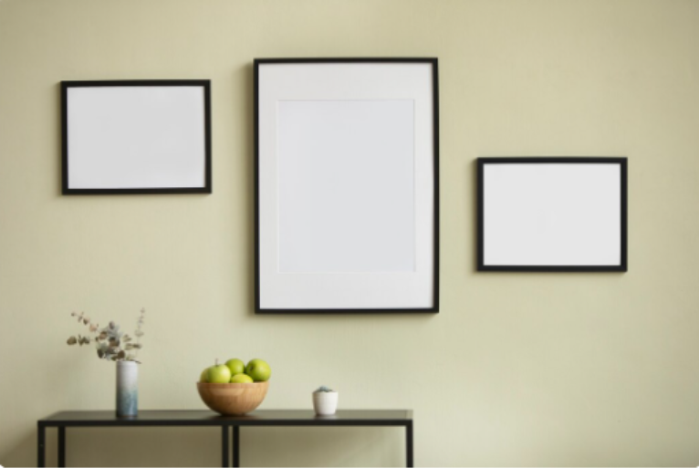 When you start designing your accent wall, the first step is picking the right photo frames. The frame’s designs, colours and materials should correspond to the room’s overall aesthetics – a wooden frame creates an environment that’s cozy, with rustic appeal; and a metallic frame contributes a contemporary, chic feel.