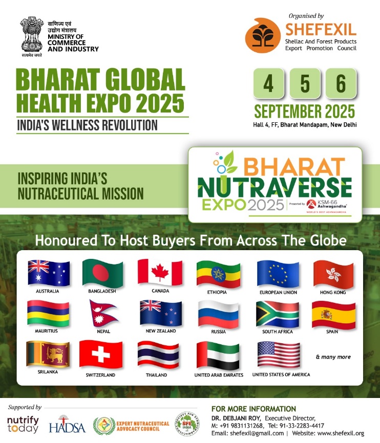 New Delhi | August 2025: India’s nutraceutical industry is stepping confidently onto the global stage—and Bharat Nutraverse Expo 2025 is set to lead this movement as the region’s largest and most focused nutraceutical platform. Taking place from 4th to 6th September 2025 at Bharat Mandapam, this flagship initiative is curated by SHEFEXIL, under the aegis of the Ministry of Commerce and Industry, Government of India.