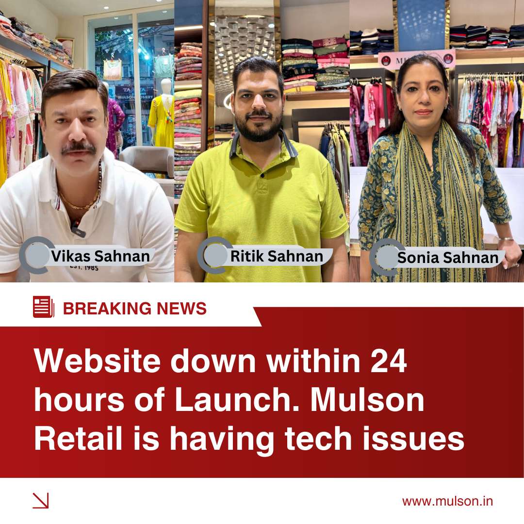 Mulson Retail ( Mulson Hosiery) a well known name in women’s fashion recently launched their website officially mulson.in on the 1st of the september. The launch was great and the brand showcasing and impressing way of women’s clothing including suits, cardigans, unstitched suits, readymade suits, kaftan, tops, kurtis, co-ord sets, Pakistani Suits, winter wear collection, summer collection and on going sales offers on stocked items. Moreover,ladies garments and cardigan manufacturers in Ludhiana. Mulson Retail is a sub branch of Mulson Hosiery having existence in the market since 1982 Led by Vikas Sahnan, Sonia Sahnan and Ritik Sahnan at the present time. However the excitement surrounding the website launch was short term by 2nd of September the website experienced significant technical issues, leading to an unexpected outage.