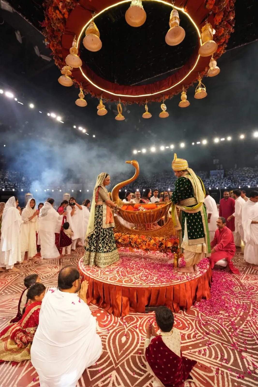 Every morning begins with the Snatra Puja at 7:30 am, a puja that commemorates the auspicious birth of Tirthankar Bhagwan. To stand amidst a sea of devotees counting above 8000, watching the rituals unfold with puja and heartfelt devotion, is to feel time dissolve into something eternal. On each day so far, the hall resonates with chants that rise like waves, washing over the assembly with reverence and joy.