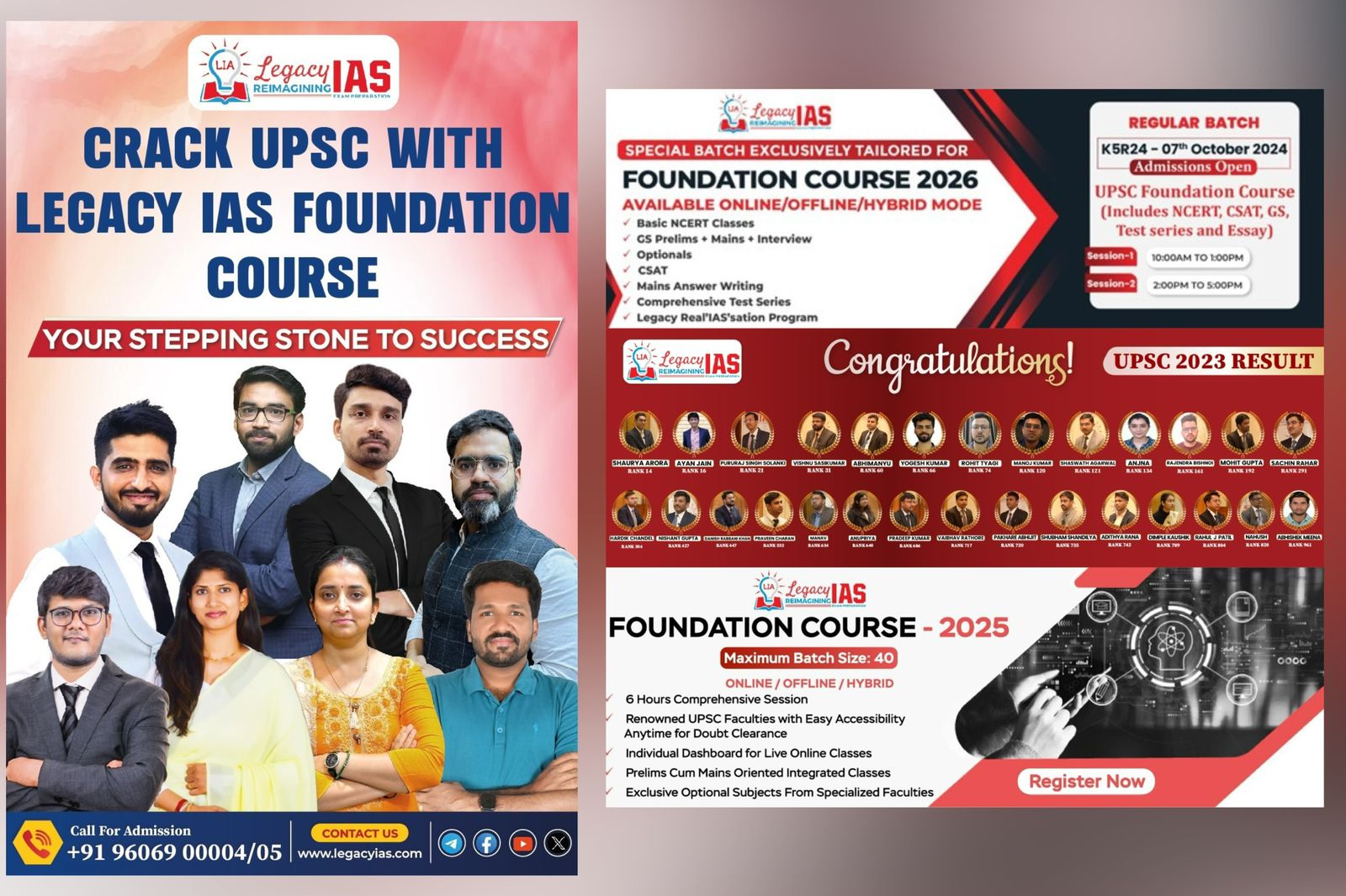 Bangalore, India – September 2024 – Legacy IAS Academy, a premier institution renowned for its exceptional guidance in UPSC Civil Services Examination (CSE) preparation, proudly announces the commencement of its upcoming coaching batch on October 7th, 2024. With a proven track record of producing top rankers and fostering future leaders, Legacy IAS continues to set the benchmark in UPSC coaching.