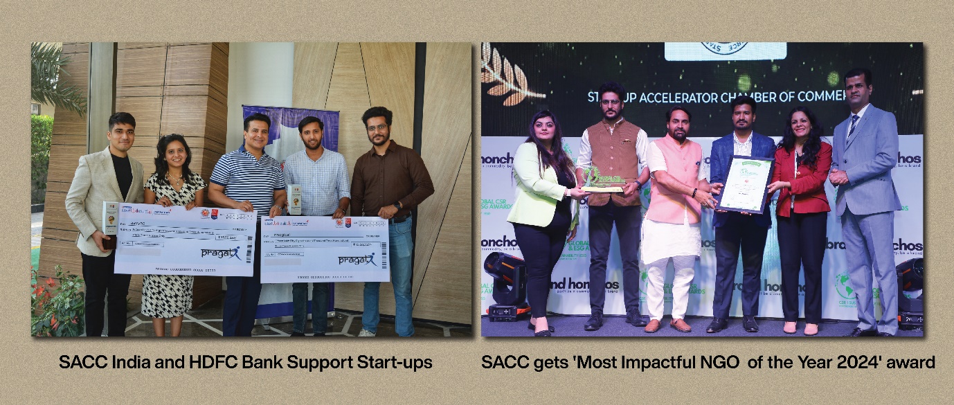 Owing to the impact driven by this program, SACC India was recognised at the prestigious Global CSR and ESG Awards 2024 held on 29th June 2024. SACC was honoured with the “Most Impactful NGO of the Year 2024” award held in Gurugram. Notably, SACC has been working in empowering youth to take up entrepreneurship since 2014 and in that process has sensitised more than 100,000 youth and has given handholding support to over 1000 start-ups and MSMEs with incubation, acceleration and impact investing. The organisation derives support from several state governments and private sector corporates like Google, Netsmartz Group, HDFC Bank, IDS Infotech, Infosys and DLF to name a few.