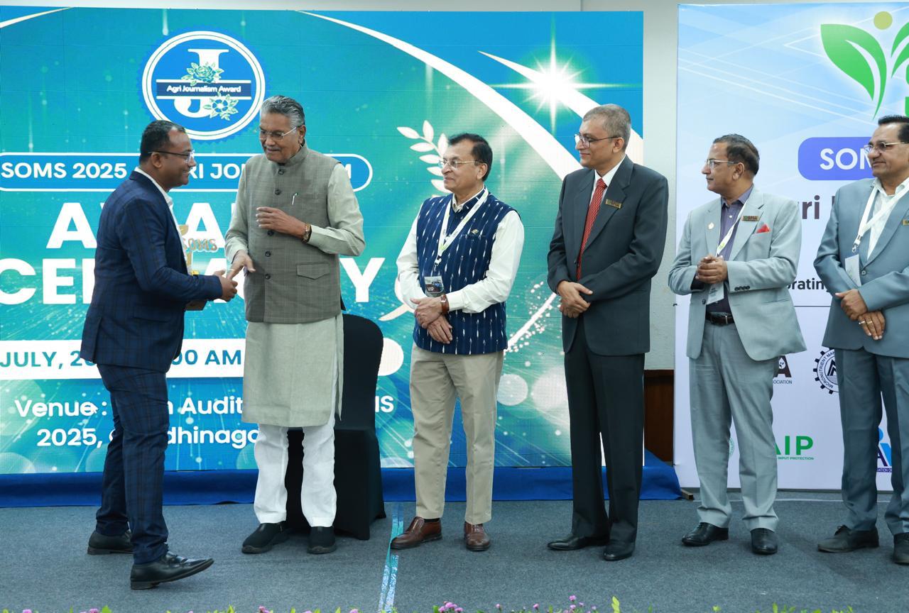 Gandhinagar, The Soluble Fertiliser Industry Association (SFIA) successfully concluded its flagship event, SOMS 2025, held at the Mahatma Mandir Convention Centre (MMC) in Gandhinagar. Themed “Agri Entrepreneur”, the event brought together key stakeholders from across the agriculture ecosystem, including agritech innovators, senior policymakers, academic institutions, and rural media professionals. With a strong emphasis on promoting agricultural innovation, rural enterprise, and responsible journalism, the event served as a vital platform for collaboration and knowledge-sharing aimed at strengthening India’s agricultural future.