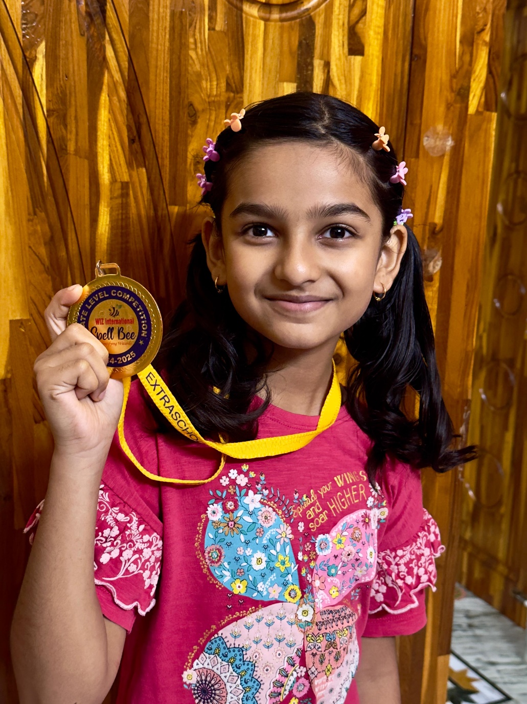 In June 2025, she won the International Spell Bee, where she competed in spelling challenges, word origin decoding, phonetic recognition, and rapid-fire rounds — emerging as the overall winner.