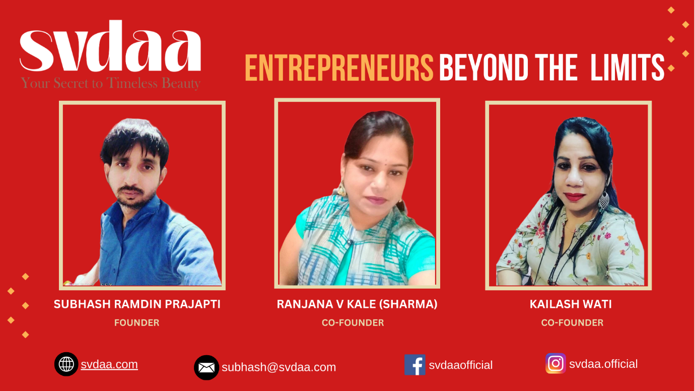 Welcome to Svdaa, where beauty meets nature in a harmonious blend of organic skincare solutions. Founded by Subhash Ramdin Prajapati, along with co-founders Ranjana V. Kale (Sharma) and Kailash Wati, Svdaa is dedicated to revolutionizing the beauty industry with its commitment to purity, efficacy, and affordability.