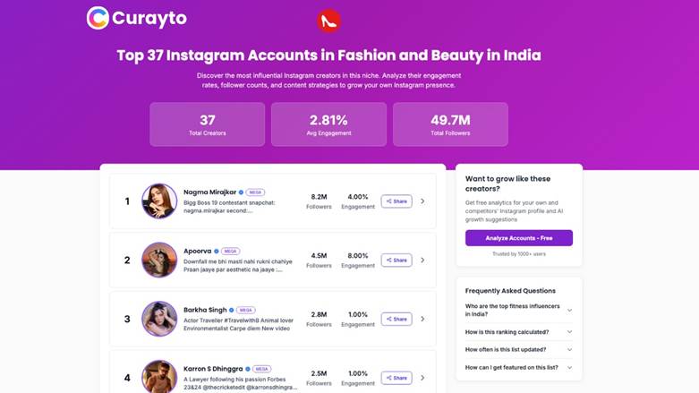 ●           Autocompetitor detection: Curayto will identify your closest competitors automatically by niche, follower band, and content behavior.