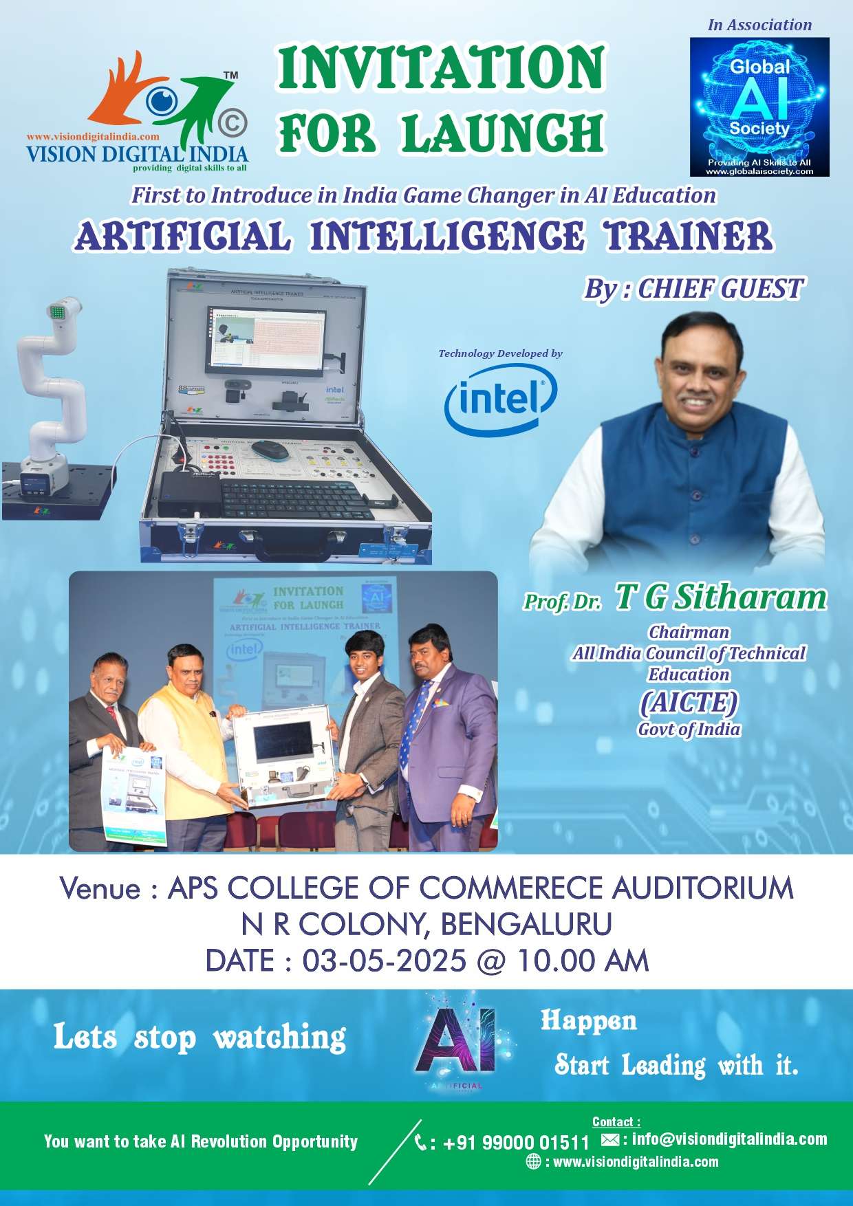 Vision Digital India, a leader in technology-enabled learning, today announced the launch of India’s first AI Trainer Machine, an innovative “AI Lab-in-a-Box” developed in partnership with Intel Global. This historic unveiling took place at APS College, Bengaluru, a prestigious 90-year-old institution known for producing distinguished alumni such as Bharat Ratna Dr. C.N.R. Rao and Superstar Mr. Rajinikanth.