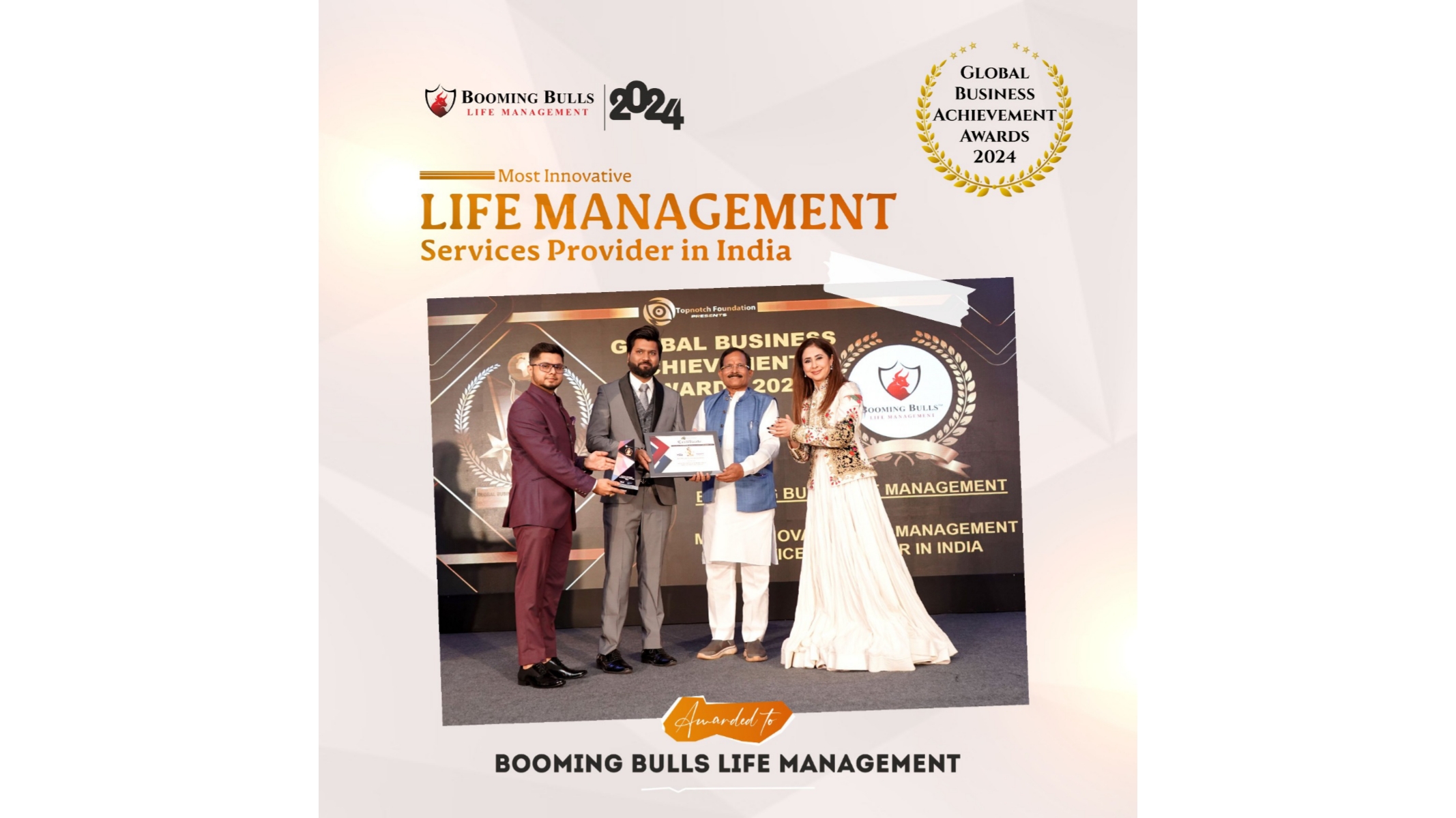 Noida, India – April 18, 2024 – Booming Bulls Life Management (BBLM) is honored to receive the prestigious title of “Most Innovative Life Management Services Provider” at the esteemed Global Business Achievement Awards 2024. This recognition marks a significant milestone for BBLM, reaffirming its commitment to revolutionizing the landscape of life management services and enriching the lives of individuals across India.